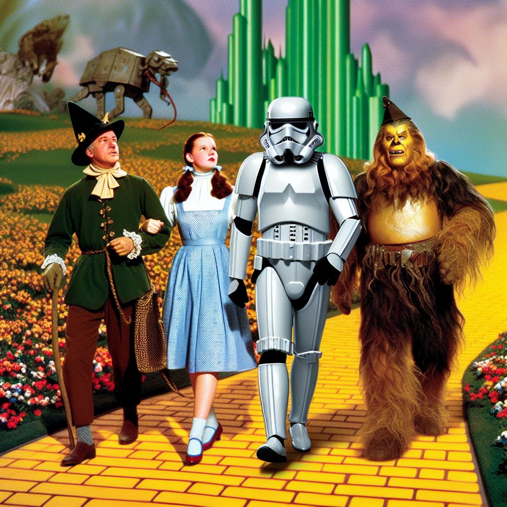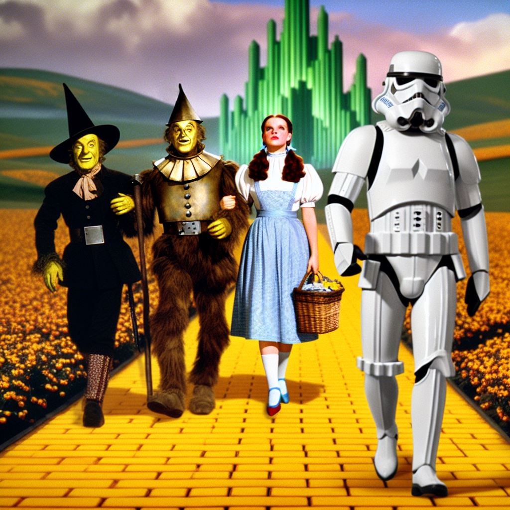 240.8 KB 1024 x 1024 | Oct 5 2024 10:16 AM CST | Dorthy can forget the oil can. Just find the StormTrooper some target practice. | ||