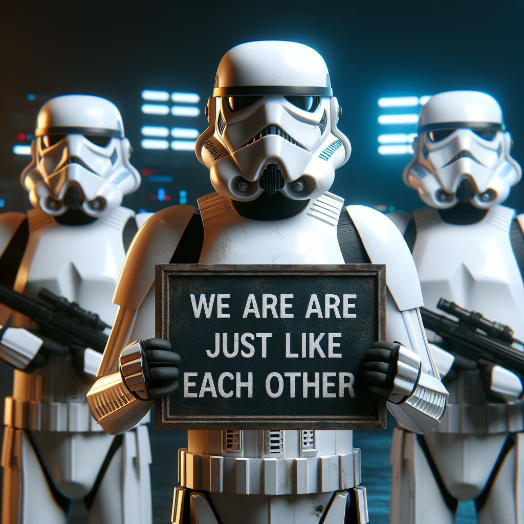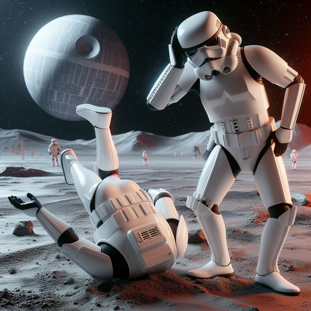 140.3 KB 1024 x 1024 | Oct 5 2024 10:16 AM CST | So, if a StormTrooper is a bad shot, how can he tell when he sees a bad shot ? | ||