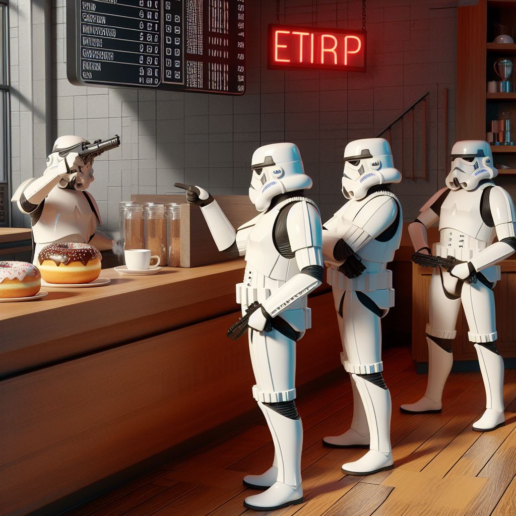 190.1 KB 1024 x 1024 | Oct 5 2024 4:05 PM CST | Minding the store, the StormTrooper discounts everything 15%. | ||